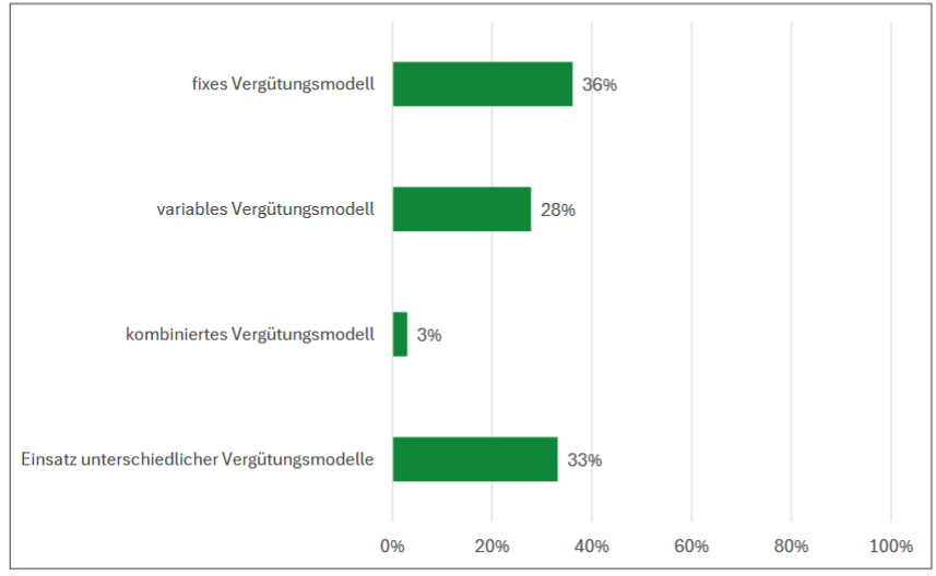 © Grafik: Entgeltsysteme und Incentives im Handwerk/Ludwig-Fröhler-InstitutDeutlich mehr als ein Drittel der Befragten gaben an, im fixen Vergütungsmodell zu bezahlen, so dass die Mitarbeiter ein festes Monatsgehalt erhalten. -
