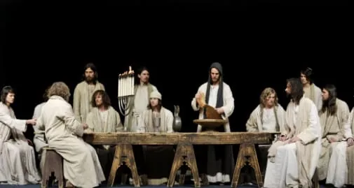 Das war auch der Wunsch von Spielleiter Christian Stückl, der für die 41. Oberammergauer Passionsspiele fast Unmenschliches geleistet hat. Es ist unglaublich zu sehen, wie der Profi-Regisseur über 2.000 Menschen dirigiert, so dass man im Publikum total vergisst, dass es sich eigentlich um ein Laientheater handelt. Besonders intensiv hat sich Stückl mit der Rolle von Jesus befasst, der für ihn kein leidender Gottesknecht und kein Opferlamm sein sollte. Für ihn ist Jesus ein streitbarer junger Jude, der für seine Botschaft, die bis heute Gültigkeit hat, ans Kreuz geschlagen wurde. Und genau so hat Frederik Mayet diesen Jesus in der Premiere dargestellt. Da alle Hauptrollen gleichwertig doppelt besetzt sind, entscheidet jeweils das Los, wer an der Premiere spielt. In der Abschlussvorstellung am 3. Oktober 2010 wird Jesus deshalb von Andreas Richter dargestellt.