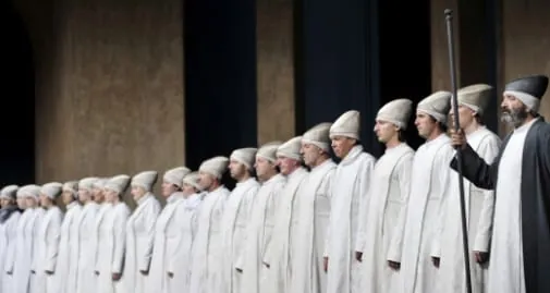 Treffsicher wurden die Kostüme von Stefan Hageneier ausgewählt, der auch für das Bühnenbild verantwortlich ist. So präsentiert er die lebenden Bilder, die traditionell nach einem Vorspiel analoge Szenen aus dem Alten Testament zeigen, in einer starken Farbigkeit, die gegen die monochrome Farbgebung der Spielszenen steht. Besonders beeindruckend ist es, wenn ein überdimensionales Zelt über der Abendmahlsszene aufgespannt wird.