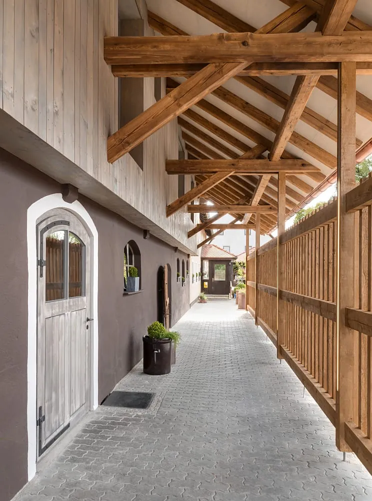 Der ehemalige Heustadel mit Kuhstall existierte vor der Rekonstruktion als ungenutzter Anbau an einem Wirtshaus, dessen Inhaber sich zum Hotelausbau entschied, ließ den Planern aber freie Hand. - © Erich Spahn
