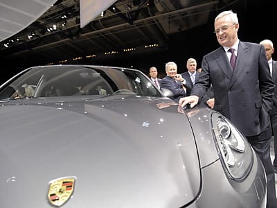 Martin Winterkorn und Hans Dieter Pötsch, Vorstandsvorsitzender und Finanzchef der Muttergesellschaft VW, verkünden in ihren Reden positive Kennziffern für die Porsche-Holding. Das Unternehmen steigerte seinen Absatz im Mai vor allem dank der Nachfrage in China um mehr als zwei Drittel. "Volkswagen und Porsche sind auf der Überholspur unterwegs", sagt Winterkorn. Für dieses Jahr erwartet Porsche ein positives operatives Ergebnis.