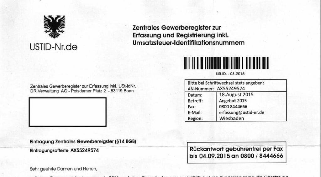 Handwerker Rasel hat inzwi schen ein Brief eines weiteren fragwürdigen Anbieters erreicht. Dieses Mal heißt der Absender "Zentrales Gewerberegister zur Erfassung und Registrierung inkl. Umsatzsteuer-ldentifikationsnummern". Auch bei der Handwerkskammer Mittelfranken ist das Branchenverzeichnis schon bekannt. In diese Falle wird Rasel jedoch nicht mehr tappen - das zumindest hat der Ärger mit dem Gewerberegistrat gebracht. sch
