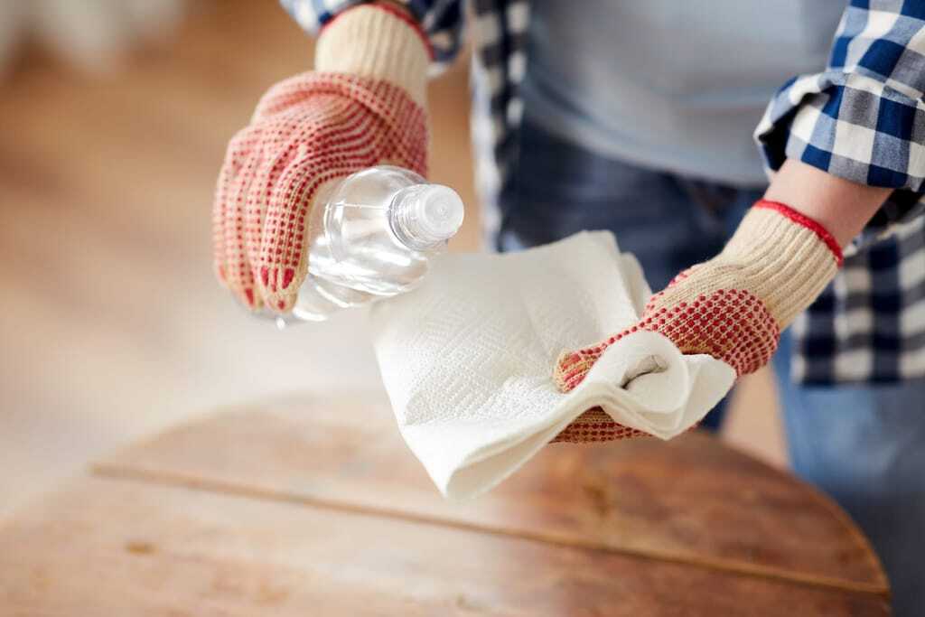 Frau kippt Lösungsmittel auf Zewa