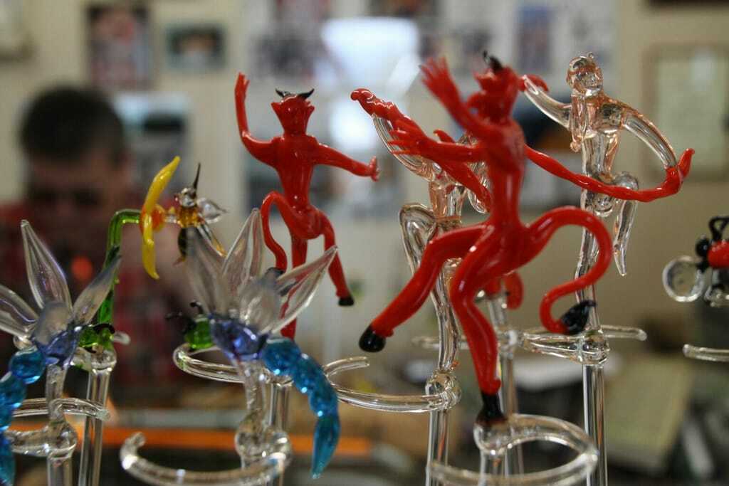 Neben Tierfiguren fertigt Mitlacher auch kleine Teufel auf Orchideenstäben. - © Foto: D.Fischer