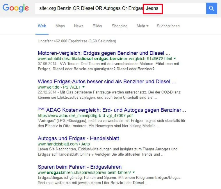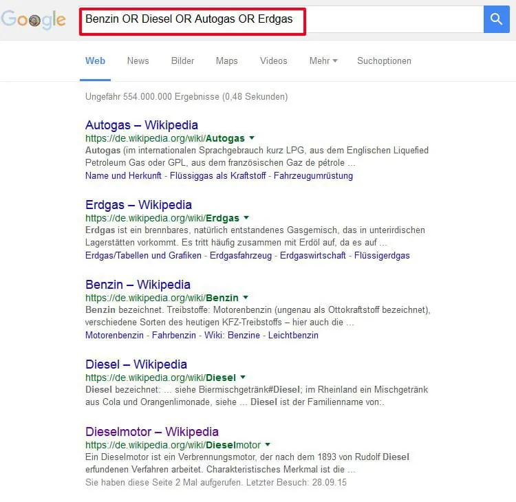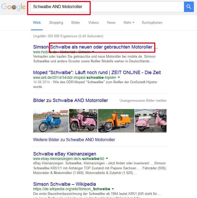 Äußerst sinnvolle Hilfen sind die sogenannten Operatoren. Sie helfen gerade bei schwammigen Ergebnislisten weiter. Durch Zeichen wie + und -, oder Schlüsselwörter wie AND und OR können Nutzer nach Wortkombinationen suchen oder Wörter ausschließen. "Das ist vor allem bei mehrdeutigen Wörtern hil freich", erklärt Becker: Bei der Suchanfrage Schwalbe AND Motorroller erhält man Infos zum motorisierten Zweirad, wer Wörter wie Motorroller, durch ein Minus vor dem Wort, ausschließt, filtert genau diese Treffer heraus. Durch den Operator OR werden Treffer erzielt, die einen der gewünschten Begriffe enthalten. Sucht man beispielsweise Benzin OR Diesel OR Autogas, werden in der Trefferliste Ergebnisse angezeigt, die eines dieser Wörter beinhalten.
