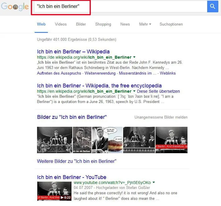 Bei der Suche nach Songtexten oder Zitaten ist die sogenannte Phrasensuche das Mittel der Wahl. Der gesuchte Satzteil wird dafür in Anführungszeichen gesetzt. Die Ergebnisliste zeigt dann nur Seiten, welche exakt diese Wortfolge enthalten. Ein Beispiel: Wird nach "Netzwerk Recherche" gesucht, findet die Suchmaschine nur Texte, in welchen das Wort "Recherche" unmittelbar nach dem Wort "Netzwerk" steht. Die Wortfolge "Netzwerk fördert Recherche" wird aber ausgeschlossen.