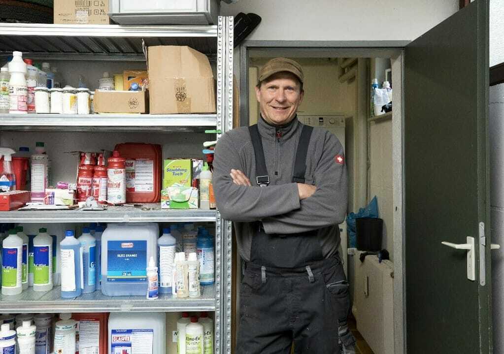 Gebäudereinigermeister André Methner bemüht sich seit drei Jahren um einen Standort für seine neue Halle – bisher erfolglos, obwohl es geeignete Grundstücke gibt. Aktuell arbeitet der Sachverständige im Gebäudereinigerhandwerk von zu Hause aus. Materialien und Maschinen lagern im Keller sowie in einer angemieteten Scheune.