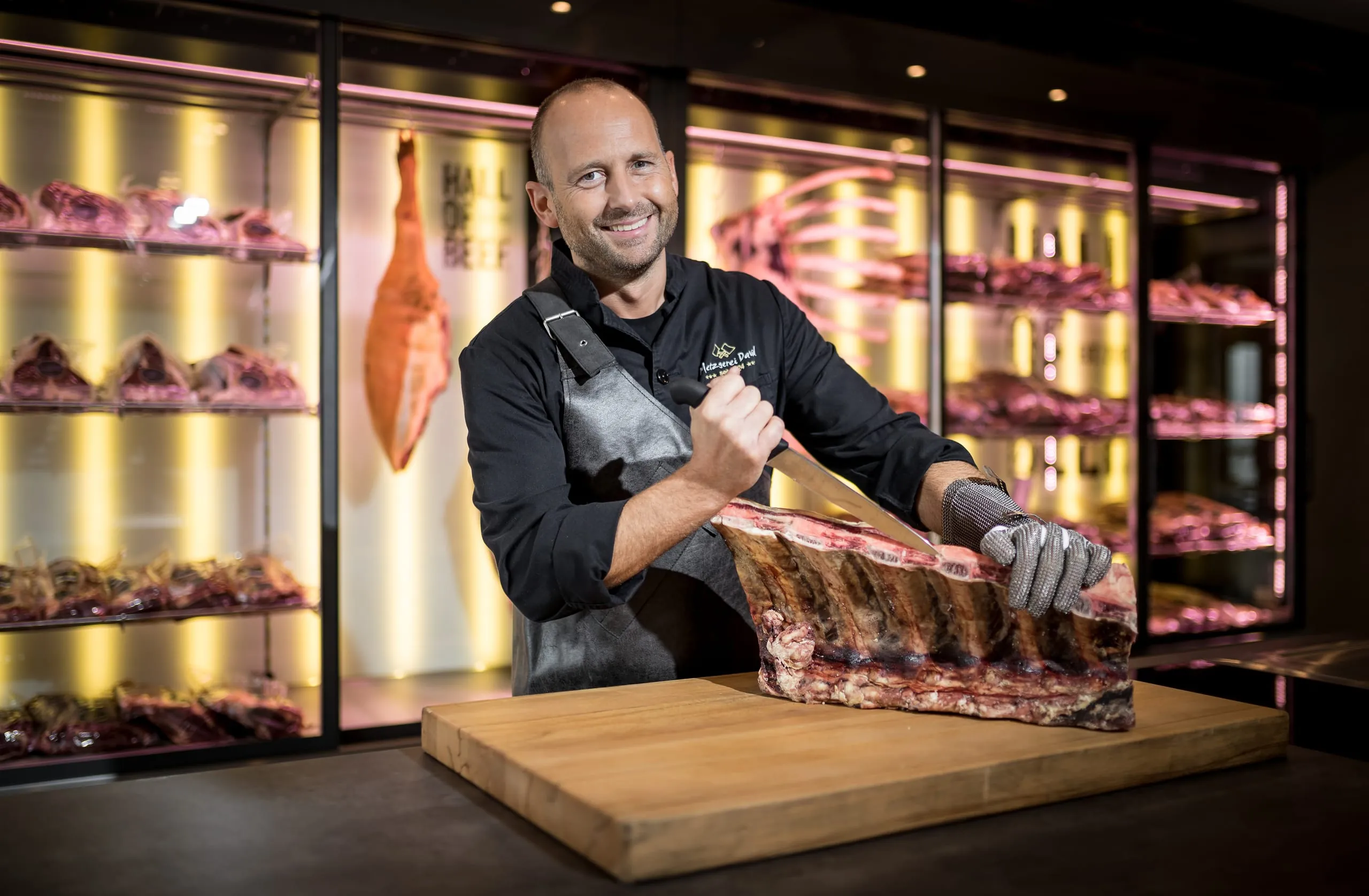 Am Anfang habe er sich für die geänderten Öffnungszeiten geschämt – auch mit Blick auf die Außenwirkung – erinnert sich David. "Aber manchmal wird man auch zu seinem Glück gezwungen", erzählt er. Während sein Blick durch die Räumlichkeiten schweift, betont der 47-Jährige: "Wir haben das große Glück, dass wir diese Hall of Beef haben". Ursprünglich sollten in der Location nur einmal pro Monat Events stattfinden, um die Metzgerei zu bewerben. Mittlerweile kommen wöchentlich Interessierte – meist zu Steak Tastings, bei denen der Metzgermeister alles rund um Steaks und deren Zubereitung erklärt. Was seine Gäste dabei am meisten begeistert? Dass er mit so viel Leidenschaft über sein Handwerk spreche, erzählt Jürgen David stolz.