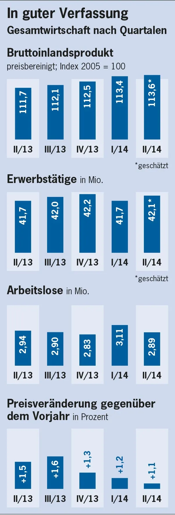 Vor allem an der privaten Baunachfrage und am Konsum der Deutschen gibt es auch wirklich nichts auszusetzen. Dagegen ist die verhaltene Kreditnachfrage deutscher Firmen ein Beleg dafür, dass die Investitionsgüterkonjunktur erst im Begriff ist, richtig Fahrt aufzunehmen. Und auch die öffentliche Hand müsste deutlich mehr und gezielter investieren – in Straßen, Netze und Bildungsstätten. Angesichts sprudelnder Steuerquellen hätte der Staat genügend Spielraum, die Sanierung der Infrastruktur entschlossen anzupacken.