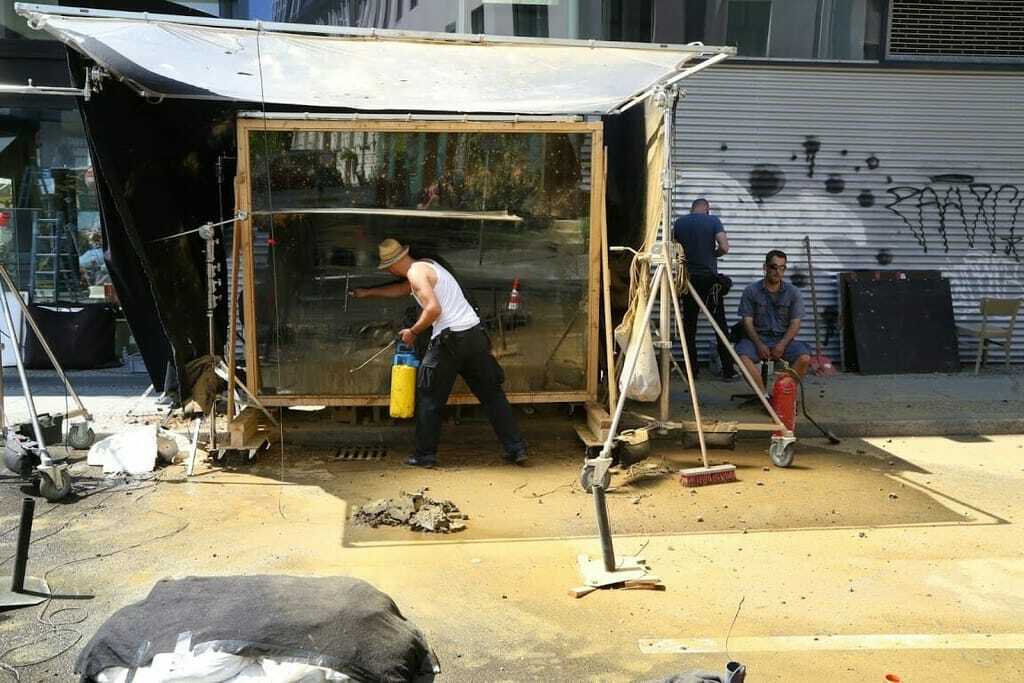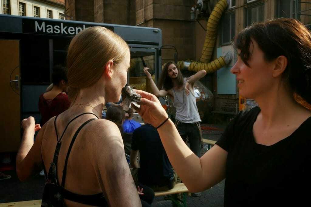 Am Set des neuen Handwerk-Spots hat Nina deshalb viel zu tun: In vier Tagen muss sie mit ihren beiden Kollegen rund 200 Personen "drehfertig" machen: "Dieser Film ist sehr actionreich", verrät Nina, "weshalb die Darsteller etwas kämpferisch aussehen sollen. Den Staub in ihren Gesichtern stellen wir mit Spezialpuder und autverträglichen Ölen her."