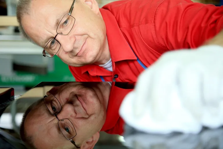 Der Lack glänzt tiefschwarz. Kein Stäubchen darf sich auf der Oberfläche niederlassen. Und erst recht kein Kratzer. Schreinermeister Martin Lack poliert den spiegelnden Spieltisch mit Hingabe. Fast sein ganzes Berufsleben lang ist er schon bei Heuß angestellt und darauf ist er sichtlich stolz. "Unsere Leute sind motiviert bis in die Haarspitzen", sagt Heuß. Jeder verantworte seinen Bereich in eigener Zuständigkeit. Ist Not am Mann, durch Krankheit oder Urlaub, dann steht Stefan Otto Heuß auch mal an der Kreissäge. Als Chef gibt er zwar den Ton an, springt aber auch dort ein, wo er gebraucht wird.