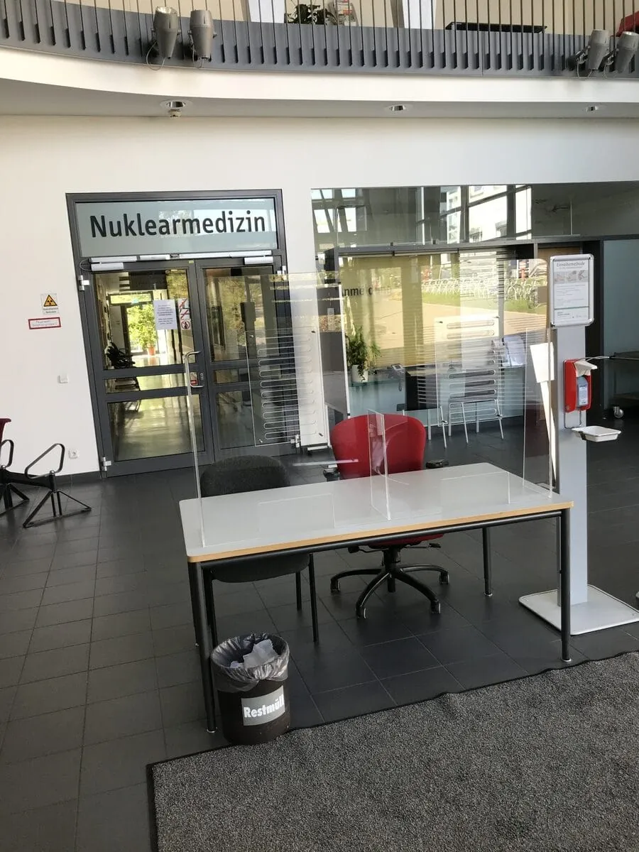 Der Effekt kann sich hören lassen. Die Beschäftigten im UKT berichten von einer Verbesserung um 60 bis 80 Prozent. Auch in anderer Hinsicht hätten sich die modifizierten Schutzscheiben als eine willkommene Verbesserung erwiesen. Bei den alten Modellen hätten viele Besucher und Patienten ihr Gesicht in die Durchreiche gestreckt oder seien an der Schutzvorrichtung vorbeigelaufen – teils, um so besser mit dem Personal sprechen zu können, teils aber auch wegen der fehlenden optischen Führung. Durch das neue "Akustik-Feld" wüssten sie nun intuitiv, wo sie hineinsprechen müssen. Der Infektionsschutz sei trotz der Aussparungen weiterhin gewährleistet, versichert Müller. Die Verantwortlichen für Arbeitsschutz hätten die Lösung geprüft und ihr zugestimmt – ohnehin seien die Hygieneschutzwände durch ihren Einsatzort quasi "klinisch getestet", sagt er.
