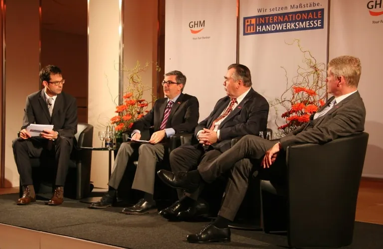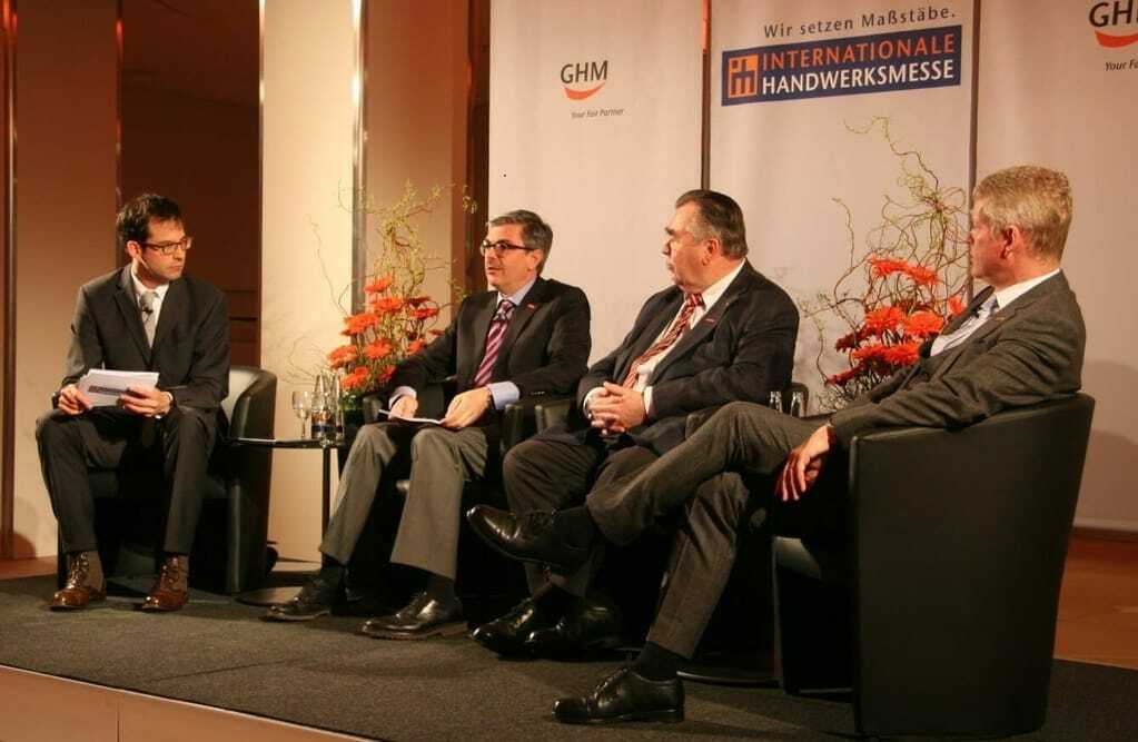 Pressekonferenz im Vorfeld der Internationalen Handwerksmesse: Patrik Hof (GHM), Dieter Dohr, Heinrich Traublinger und Holger Schwannecke (v.li.n.re.). - © Foto: Daniela Lorenz