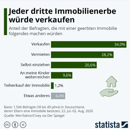 Wer heute eine Immobile erbt, muss entscheiden, ob angesichts dieses enormen Wertzuwachses ein Verkauf oder weiter Abwarten die bessere Option ist. Und vor diesem Luxusproblem stehen nicht wenige, denn das Deutsche Institut für Altersvorsorge schätzt, dass zwischen 2015 und 2024 die gigantische Summe von rund 1.293 Milliarden Euro in Form von Immobilien vererbt wurde oder noch wird. Doch was machen mit Oma Erikas kleinem Häuschen?