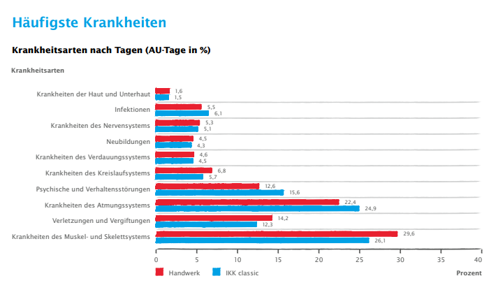 Für einen direkten Vergleich nach Gewerken können Sie auf die IKK-Bericht Gesundheit im Handwerk zugreifen.