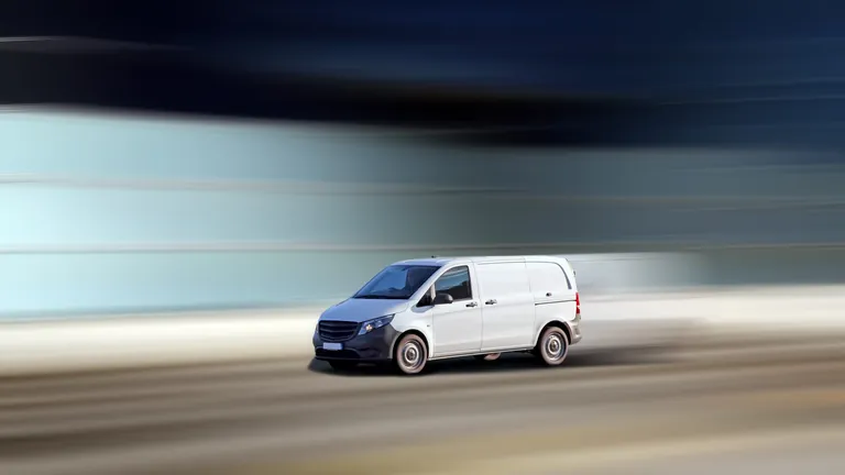 Dynamische Fahrt von einem Kleintransporter.