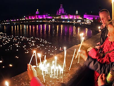 Der Kirchentag steht unter dem Motto "...da wird auch dein Herz sein". Das Laientreffen war am Mittwochabend mit drei Gottesdiensten unter freiem Himmel in der Innenstadt von Dresden eröffnet worden. Daran nahmen nach Angaben der Organisatoren knapp 100.000 Menschen teil. Am späten Abend entzündeten viele Menschen an beiden Ufern der Elbe Tausende Kerzen. Die Veranstalter setzten bei sakralen Chorgesängen mehrere Hundert Kerzen auf die Elbe.