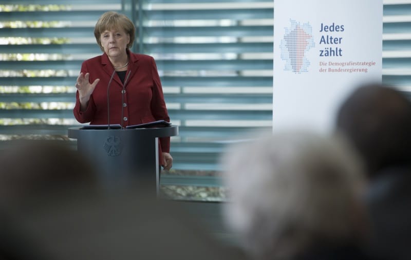 Bundeskanzlerin Angela Merkel (CDU) sprach im Bundeskanzleramt in Berlin bei einer Tagung zum demografischen Wandel auch über das Betreuungsgeld. - © Steffi Loos/dapd