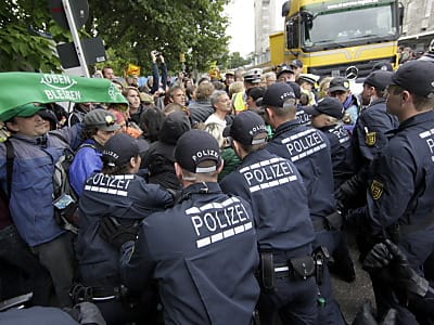 Stuttgart (dapd). Der Konflikt um das Milliardenprojekt "Stuttgart 21" droht sich weiter zu verschärfen. Angesichts der angekündigten Rohrverlegungsarbeiten der Bahn an der Grundwasseraufbereitungsanlage blockierten am Montag erneut rund 100 Demonstranten die Baustellenzufahrt. Innenminister Reinhold Gall (SPD) sagte indes, dass man zwar einen erneuten Einsatz von Wasserwerfern vermeiden wolle, er dies aber nicht ausschließen könne.