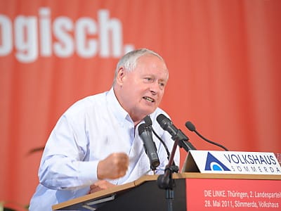 Zudem müsse die Linke den Sozialstaat verteidigen. Dieser sei in den vergangenen Jahren unter anderem durch die Hartz-IV-Reform demoliert worden. Den Menschen müsse die Angst genommen werden vor Arbeitslosigkeit, Erwerbsunfähigkeit oder der Armut im Alter. Auch dem Lobbyismus sagte Lafontaine den Kampf an: "Wir wollen keine gekaufte Politik." Parteispenden müssten daher abgeschafft werden.