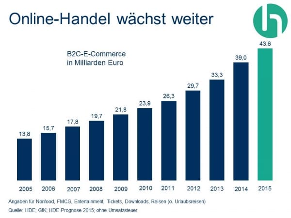 Allein der Umsatz im Onlinehandel ist in den vergangenen sieben Jahren nach Angaben des Instituts für Handelsforschung (IFH) Köln von rund 15 Milliarden Euro auf fast 43 Milliarden Euro angestiegen. 2020 soll er bei über 100 Milliarden Euro liegen. Der Umsatzanteil des E-Commerce lag 2013 bei 8,4 Prozent, 2020 wird er den Prognosen zufolge auf 23,2 Prozent angewachsen sein. "Heute wird jeder zehnte Euro bereits im Internet verdient", sagt Boris Hedde vom IFH Köln.