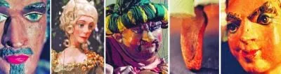Liebevoll geschnitzt Puppen: Don Giovanni, die Gräfin aus "Die Hochzeit des Figaro", Osmin aus "Die Entführung aus dem Serail", Detailaufnahme aus "Der Nussknacker" und Papageno aus "Die Zauberflöte". Foto: Salzburger Marionettentheater