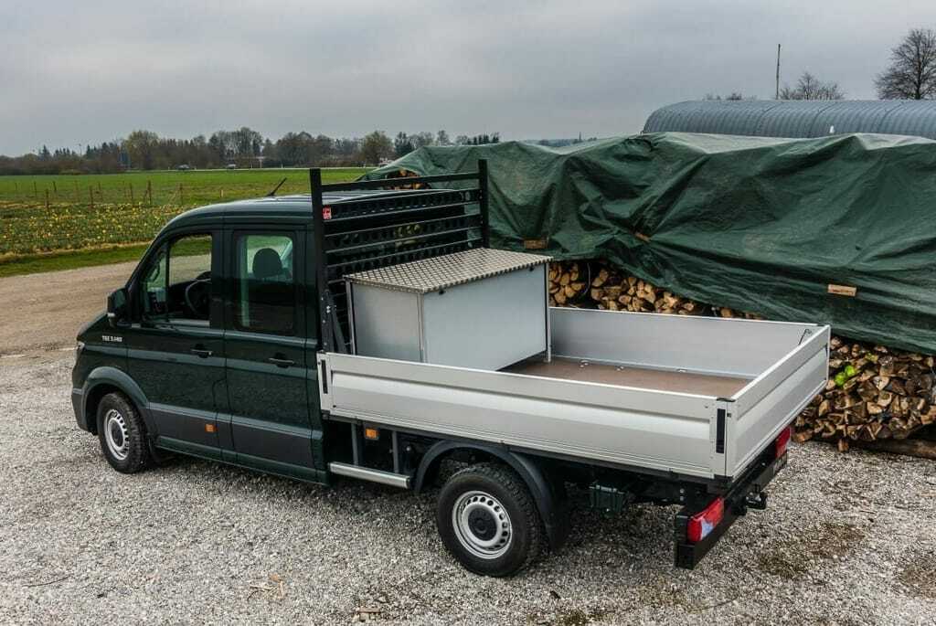 Doppelkabinen mit Pritsche, die sogenannten Dokas, sind im Bauhandwerk oder GaLa-Bau beliebte Fahrzeuge, können doch neben dem Material und Werkzeug bis zu sieben Personen mitfahren. Wenn das auch auf der zweiten Sitzreihe sicher kein Vergnügen ist, können sich der Fahrer und seine beiden Beifahrer nicht über mangelnden Platz oder Sitzkomfort beklagen.