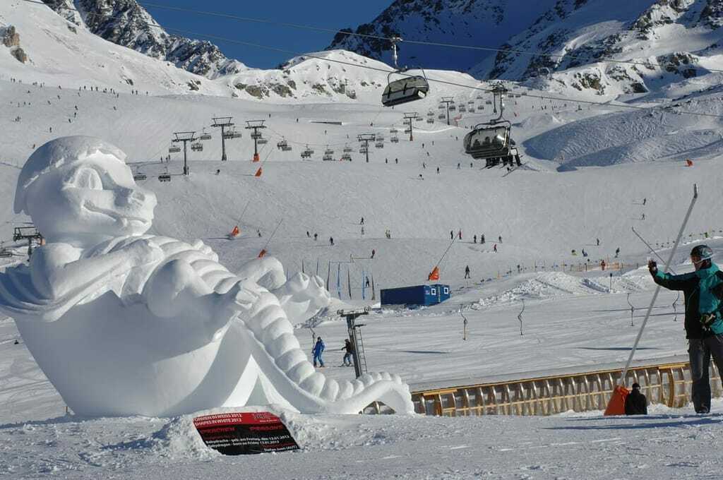 Beim Schneeskulpturen-Wettbewerb „Formen in Weiß“ von 11. bis 15. Januar 2016 erschaffen internationale Künstler mitten im Skigebiet Zirkusfiguren aus Schnee.