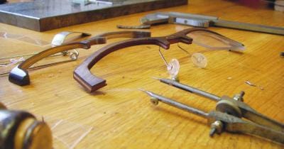 Augenoptiker Tomas Tauschek sieht sich als Handwerker in ursprünglichem Sinn und baut seine Brillengestelle deshalb selbst