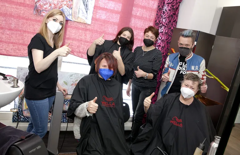Im Salon "Art of Hair" in Kaufbeuren herrscht Betriebsamkeit – Haare waschen, schneiden, das letzte Styling platzieren. Die drei Kundinnen genießen ganz offensichtlich ihren Friseurbesuch. Es sind besondere Kundinnen, die Friseurmeister Günther Fischer und sein Team heute chic machen. Die Damen sind alle von Beruf Krankenpflegerinnen und seit vielen Jahren am Klinikum Ostallgäu in Kaufbeuren tätig. Sie nutzen das Angebot der Salons, heute kostenlos bedient zu werden.