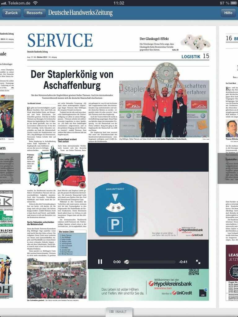 Multimedialer Mehrwert: Die digitale Zeitung kann mit Videos, Bildergalerien und Grafiken angereichert werden. Das Video zur Meisterfeier oder dem neuen