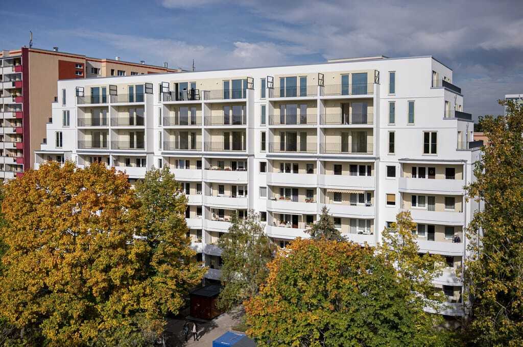Ein unscheinbarer weißer Plattenbau am nordöstlichen Stadtrand von Berlin steht an diesem Mittwoch sinnbildlich für die Herausforderungen des sozialen und umweltfreundlichen Wohnungsbaus in Deutschland. Noch vor zwei Jahren war das Gebäude der landeseigenen Wohnungsbaugesellschaft Howoge drei Stockwerke kleiner und um 22 Wohnungen ärmer. Nach rund 20 Monaten Bauzeit ist die Aufstockung der Platte nun abgeschlossen, neue Mieterinnen und Mieter können einziehen. In einigen Wohnungen kostet der Quadratmeter lediglich 6,50 Euro Miete.