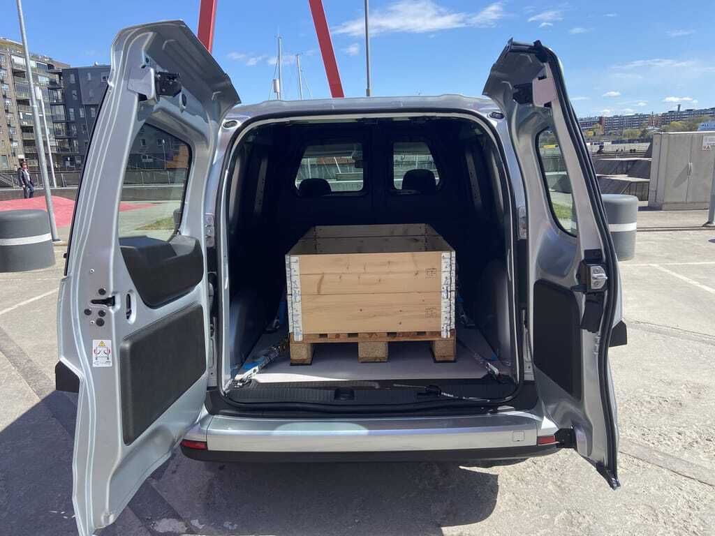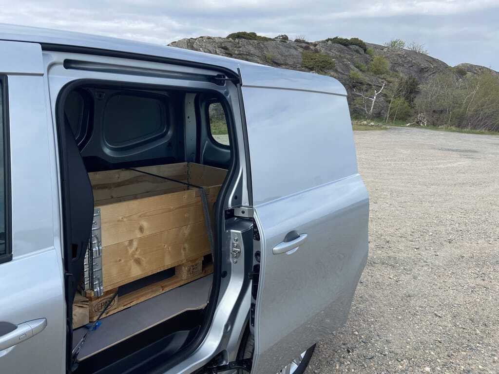 Die Trennwand zwischen Fahrerkabine und Laderaum hat in der Grundausstattung des gewerblichen Transporters kein Fenster, das gibt es erst gegen einen Aufpreis. Dritte Option ist ein schwenkbares Gitter auf der Beifahrerseite, das sich um 90 Grad drehen und verriegeln lässt. Dadurch und mit dem Umklappen des Beifahrersitzes steigt die Laderaumlänge auf 3,05 Meter beim Kompaktmodell und auf 3,41 Meter bei der Version mit langem Radstand.