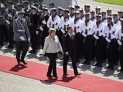 Militärische Ehren für russischen Präsidenten Merkel und Medwedew wollen bei Treffen 15 Abkommen vereinbaren