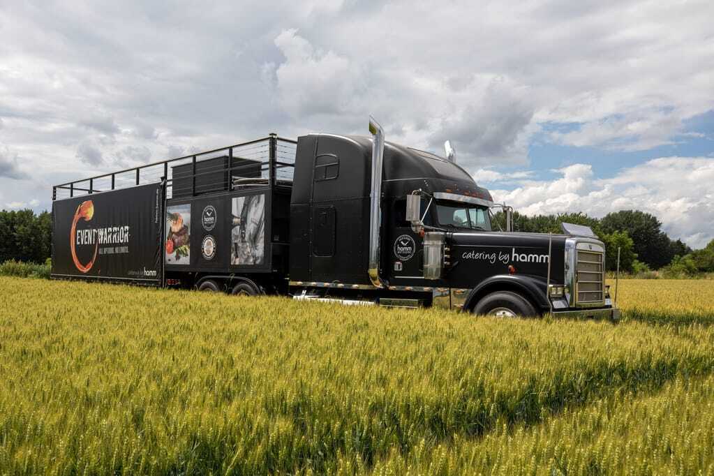 Über den Online-Shop bestellen Kunden aus ganz Deutschland Produkte von Hamm. "Die Corona-Pandemie hat uns gezeigt, wie wichtig es ist, sein Geschäft breit aufzustellen." Damals brach das Catering-Geschäft als zweite Säule völlig zusammen. Doch das ist längst Vergangenheit. "Wir erzielen im Catering 40 Prozent des Gesamtumsatzes und müssen inzwischen Aufträge ablehnen, weil wir uns vor Anfragen kaum retten können", sagt Hamm. Dass es so gut läuft, liege auch daran, dass sie etwas anzubieten hätten, was es so bei der Konkurrenz nicht gebe. Dazu zählen der 40-Tonner, der schon in einer Hollywood-Werbung zu sehen war, genauso wie das Tiny House.