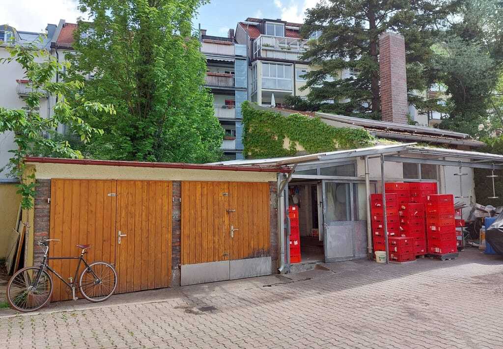 Das kleine Produktionsgebäude im Hinterhof: Hinter den verschlossenen Holztoren befinden sich Kühlkammer und ein kleiner Raum zum Zerlegen der Tiere. Daneben geht es in die Wurstküche. - © Maria Poxleitner