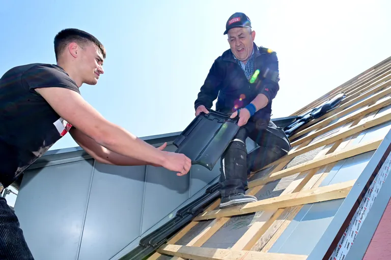 Trotz der körperlich hohen Anforderungen ist das Dachdeckerhandwerk zurzeit ein beliebter Ausbildungsberuf. Seit 2018 steigen die Azubizahlen kräftig und auch Gottlieb hat keine Probleme, Nachwuchs zu finden. "Wir haben einen vielseitigen Beruf, das ist für die Jungen attraktiv. Aber es ist auch für die Älteren ein Vorteil, denn wir haben viel Abwechslung in den Bewegungen." Von 17 bis 62 Jahren reicht die Altersspanne in seinem Betrieb. Heinz Reuter geht im kommenden Jahr in Rente, doch junge Kräfte kommen nach. In jedem Lehrjahr hat Gottlieb zwei Azubis.