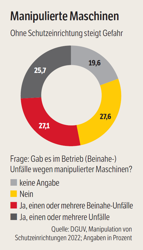Schutzvorrichtungen an Maschinen werden häufig manipuliert. Die Unfallgefahr steigt dadurch. - © Quelle: DGUV, Grafik: DHZ