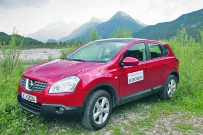 Der Testwagen, ein Qashqai Acenta 1.5 dCi mit Dieselpartikelfilter, überraschte vor allem mit seinem geringen Verbrauch. Zwar zeigte der Bordcomputer mit 6,2 l/100 km nach einer flotten Fahrt über Autobahnen und Landstraßen mehr an als die vom Hersteller angegebenen 5,5 l/100 km, dennoch kann sich dieser Wert sehen lassen. Allerdings fällt die Motorisierung (siehe Datenblatt) für ein Fahrzeug von fast zwei Tonnen zulässigem Gesamtgewicht etwas schwach aus. Wer gesteigerten Wert auf eine straffe Beschleunigung beim Überholen legt, sollte sich daher lieber für den stärkeren 2.0 dCi entscheiden. Auch den Allradantrieb gibt es nur in Verbindung mit der kräftigeren Motorvariante, egal ob Benziner oder Diesel.