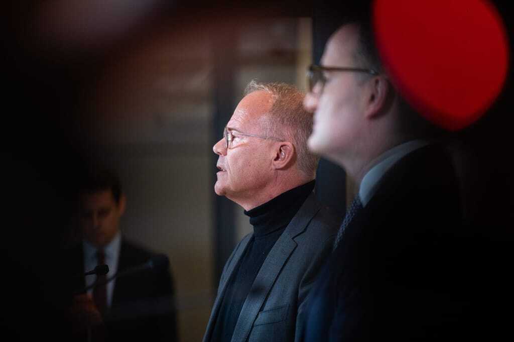 SPD-Fraktionschef Matthias Miersch (l.) und CDU-Fraktionschef Jens Spahn präsentieren die Eckpunkte für das neue Gebäudemodernisierungsgesetz. - © picture alliance/dpa | Christophe Gateau