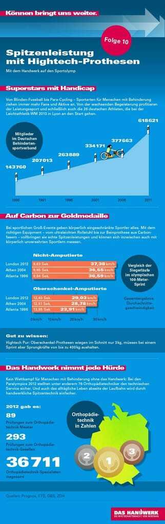Orthopädietechnik Und kein Rekord ohne das Handwerk: Mehr als 36.000 Orthopädiemechaniker-Spezialisten sorgen unter anderem mit modernen Beinprothesen aus Karbonfasern oder ultraleichten Sport-Rollstühlen für Spitzenleistungen im Behindertensport.