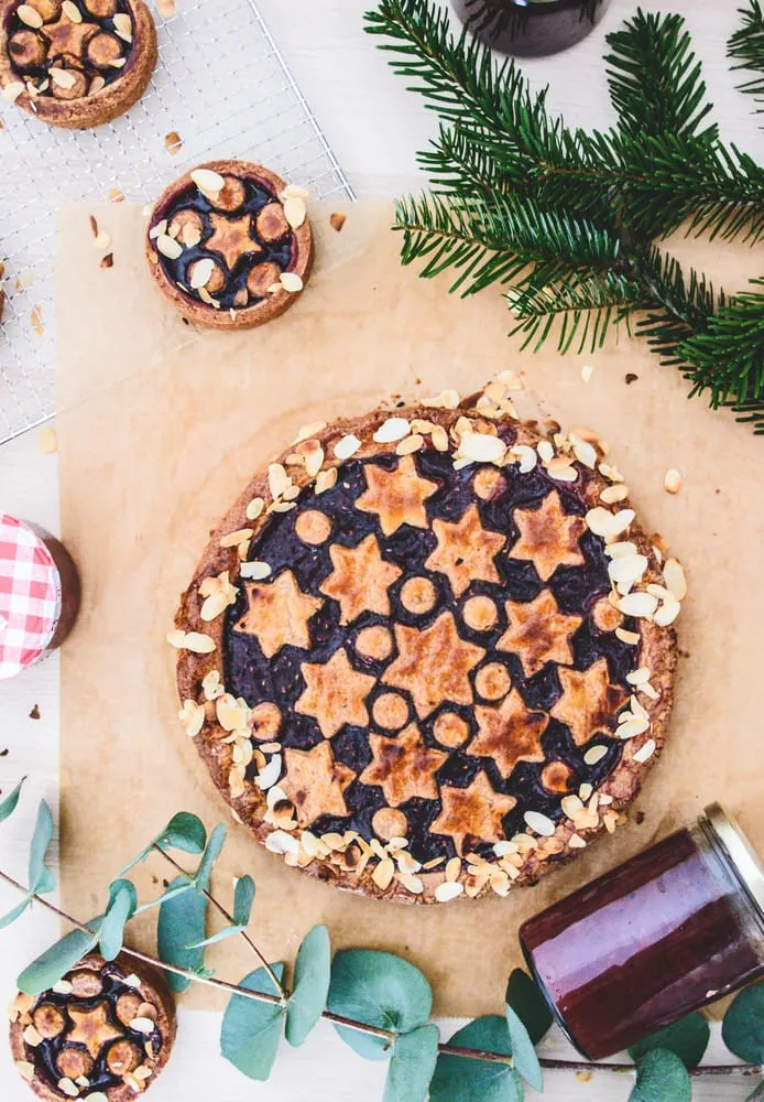 Eine Linzertorte bekommt mit Sternen einen weihnachtlichen Anstrich.