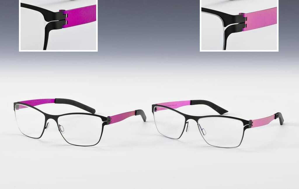 Platz 1 geht an die Brillenfassung "ARLES". Links das Original der Meyer Brillenmanufaktur aus Saarbrücken. Rechts die Fälschung, ebenfalls aus Deutschland. Die Fassung der MOM GmbH aus Rathenow sieht dem Original täuschend ähnlich. - © Aktion Plagiarius e.V.