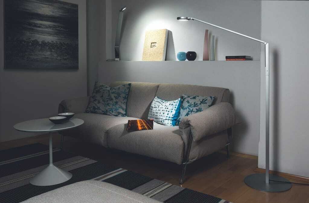 Nebenan, im Arbeitszimmer, steht eine Lampe mit sogenanntem "biologischem Licht". Sie verströmt unterschiedliches Licht über den Tag verteilt, morgens und abends rot und in der Powerphase blau. Das Licht kann durch eine App reguliert werden und passt sich dem individuellen Tages- und Nachtrhythmus an.