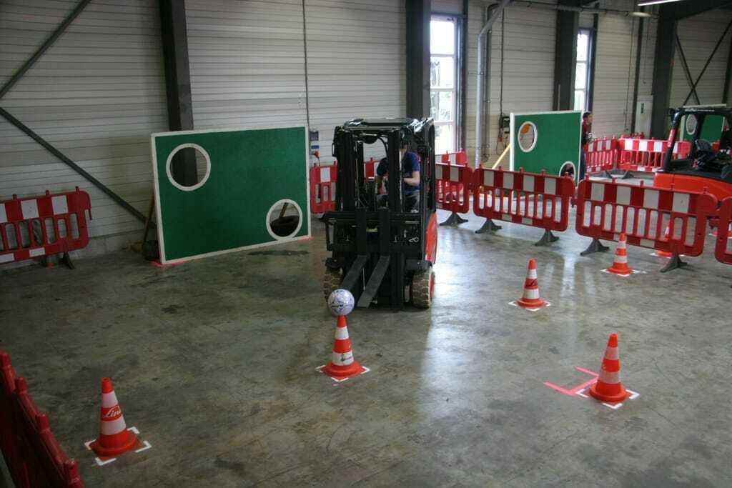 Logistik DHZ 15 IIAuch bei den praktischen Übungen steht die Sicherheit im Vordergrund. Bei den Übungen wie Torwandschießen per Stapler oder Gitterbox-Rondell müssen Lasten in unterschiedlicher Stabilität und Schwere über einen Parcours zu einem bestimmten Punkt transportiert werden. Wer die Sicherheitsvorschriften miss-achtet, wird mit Zeitstrafen im Ranking nach hinten geworfen. Verliert ein Stapler beim Basketball den Ball, muss er erst parken, die Gabel runterfahren und den Motor abstellen, bevor er ihn wieder holen darf. Auch das Fahren ohne Sicherheitsgurt oder außerhalb der markierten Bereiche wird nicht toleriert – für jedes Vergehen gibt es zehn Strafsekunden und nur die Schnellsten kommen in die nächste Runde.
