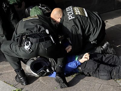 Von einem Haus in der Linienstraße wurden die Teilnehmer des rechten Aufmarsches mit wassergefüllten Luftballons beworfen. Drei Gegendemonstranten wurden festgenommen, weil sie die Kundgebung der Rechten stören wollten.