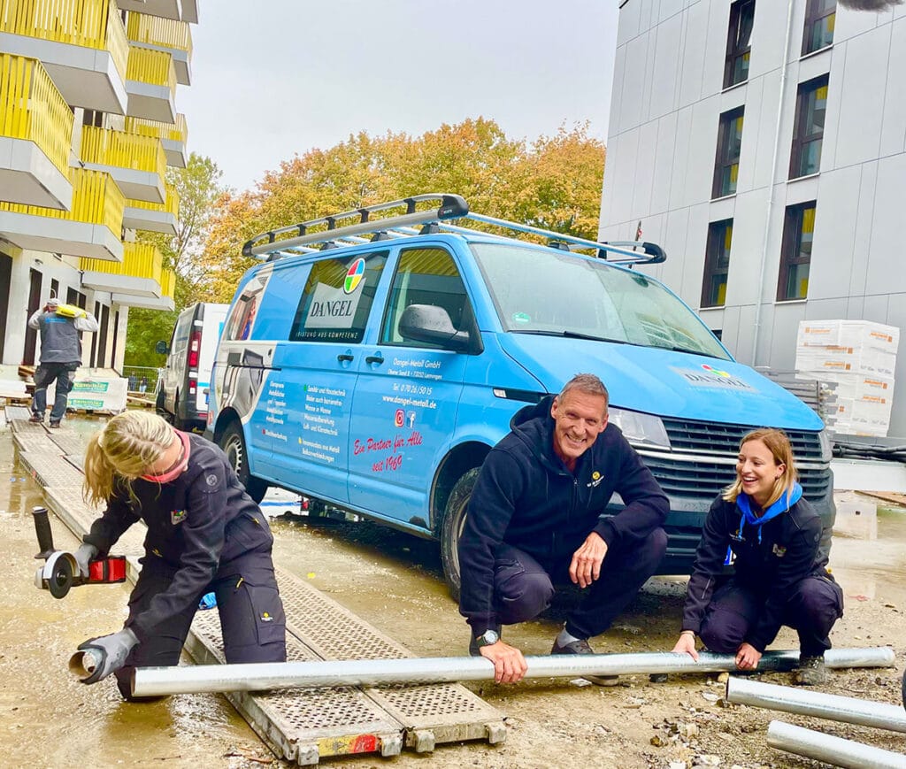 Bereits im vergangenen Jahr besuchte der Schauspieler die "Handwerksschwestern" Elena und Franziska Dangel von der Dangel Metall GmbH in Lenningen und begleitete die beiden Klempnerinnen auf eine Baustelle in Stuttgart.