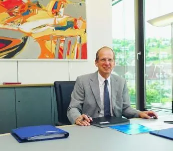 Rainer Reichhold: Wichtig in unserem neuen Gebäude waren zwei Aspekte: Ein funktioneller Arbeitsplatz mit einem Schreibtisch, der trotz seiner schlichten Ausführung allen Ansprüchen genügt. Ein Anschluss an die IT-Technik und genügend Stauraum gehören selbstverständlich dazu. Dann eine Besprechungssituation für größere Gruppen, bei der am Tisch genügend Platz für Unterlagen und Technik ist. Außerdem haben wir für persönlichere Gespräche eine Sitzecke. Hier ist kein störender Tisch als Barriere zwischen den Gesprächspartnern. Das helle Birkenholz an den Wänden und beim Mobiliar wirkt sehr freundlich. Hier hat unser Schreinerhandwerk eine Meisterleistung vollbracht.