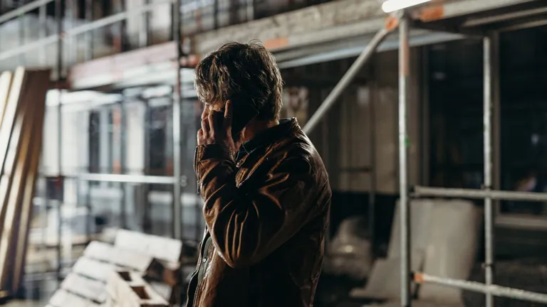 In der Zwickmühle: Bauleiter Lutz (Peter Schneider) hat einen folgenschweren Fehler begangen und droht aufzufliegen. - © Miriam Stanke/Wood Water Films
