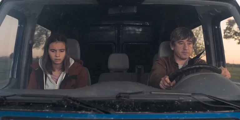 Roadtrip im Transporter: Lutz (Peter Schneider) bringt die widerspenstige Irsa (Angjela Prenci) auf eigene Faust zurück nach Albanien. - © Miriam Stanke/Wood Water Films